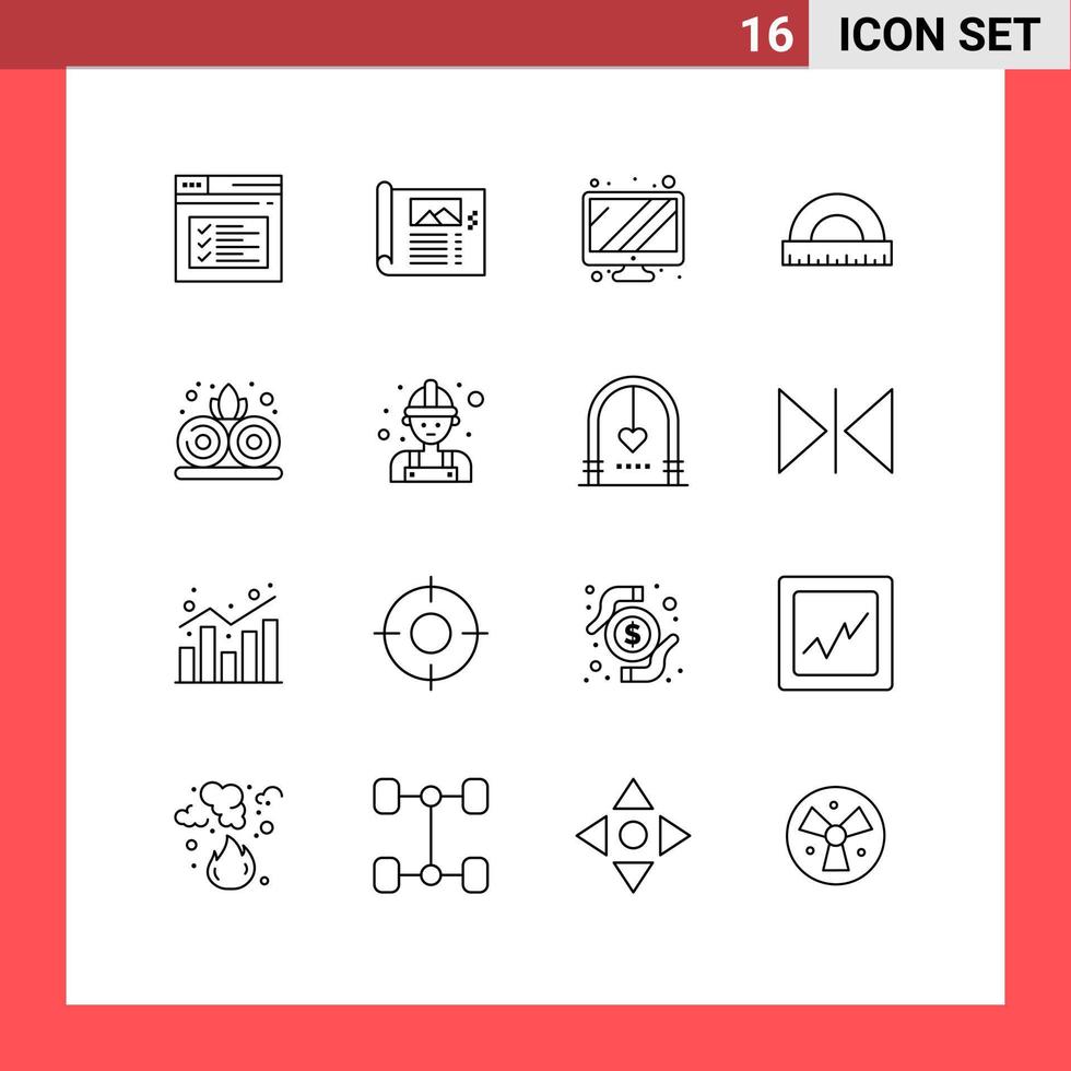 Modern Set of 16 Outlines Pictograph of scale measure sketch construction device Editable Vector Design Elements Free Vector
