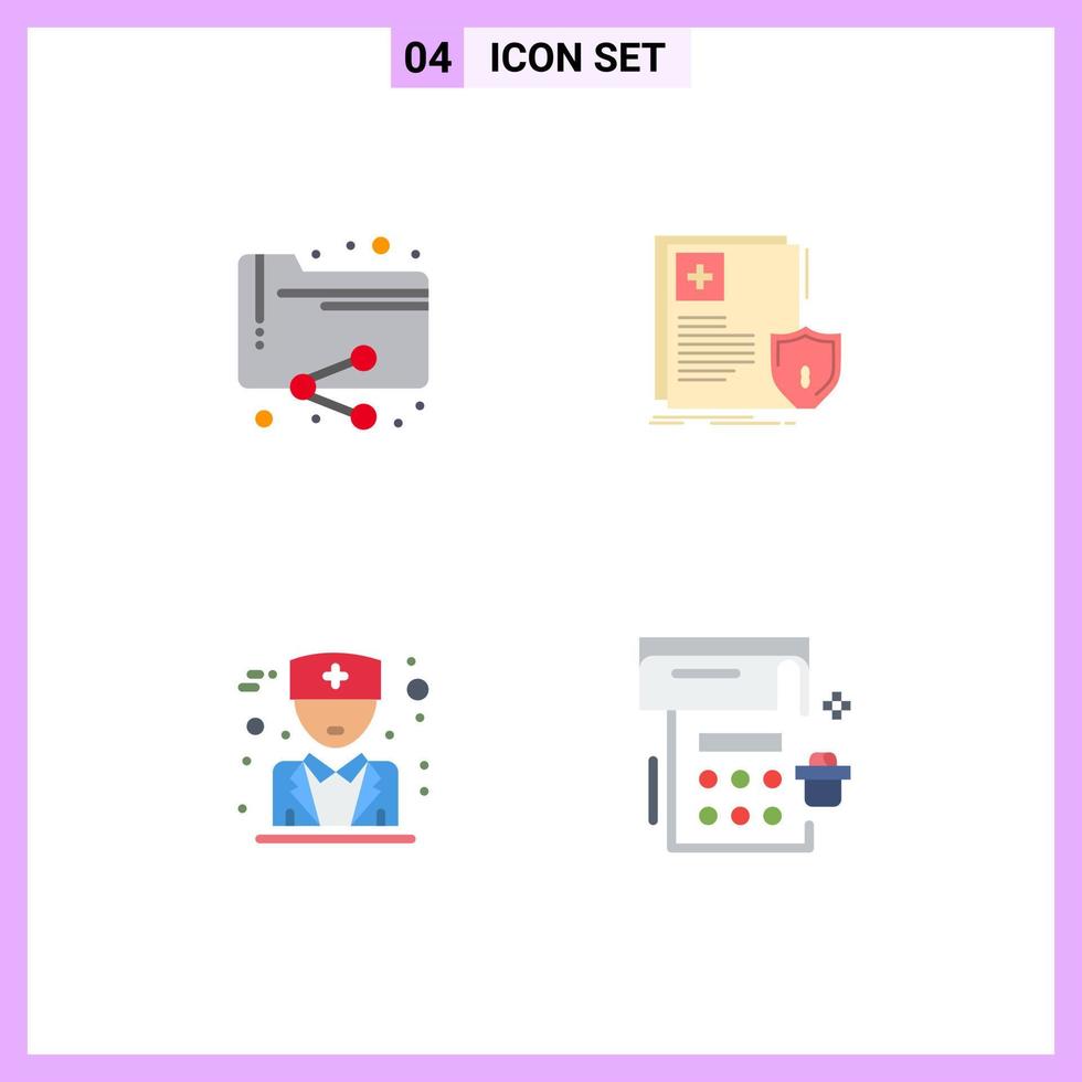 4 Universal Flat Icons Set for Web and Mobile Applications share doctor folder sheild physician Editable Vector Design Elements