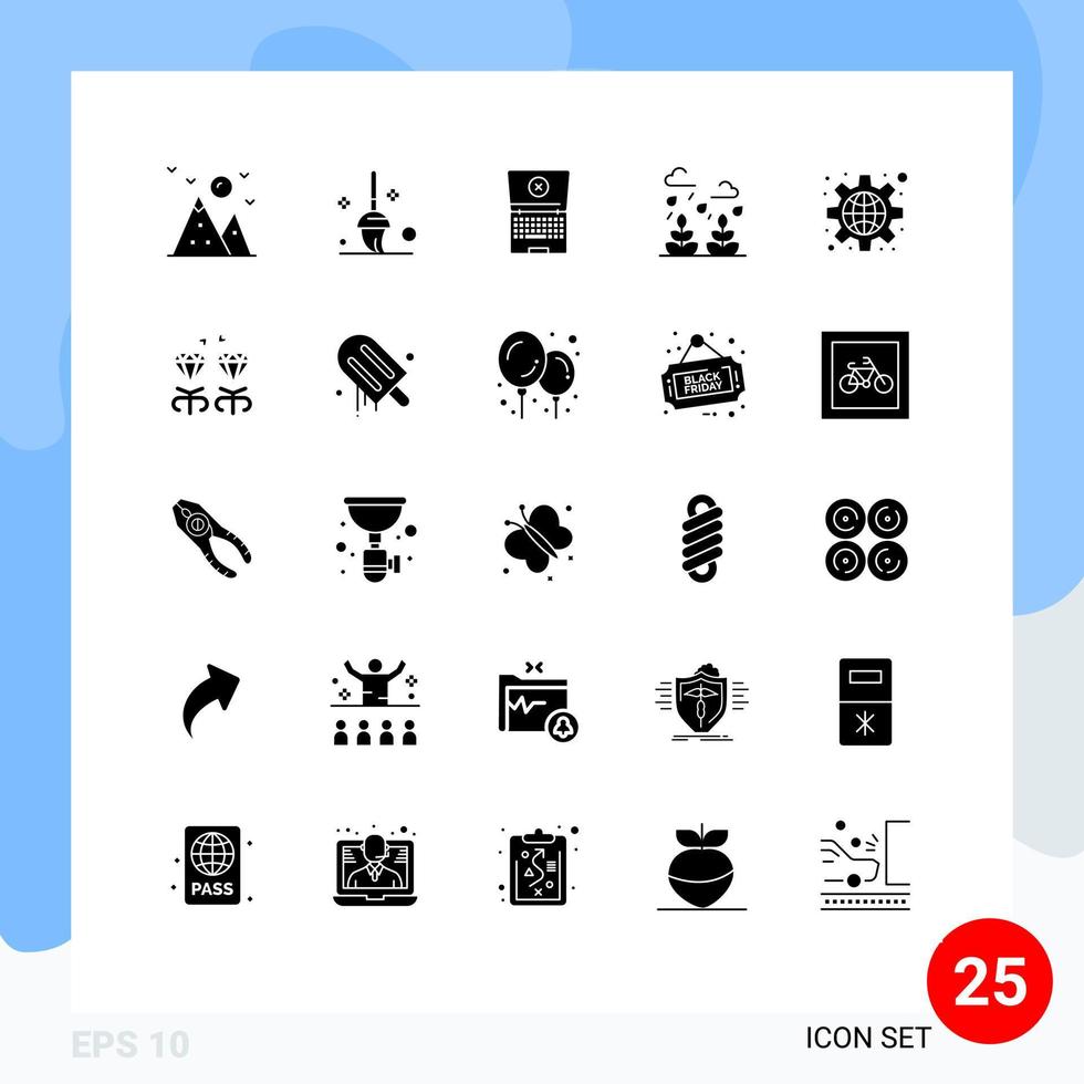 Mobile Interface Solid Glyph Set of 25 Pictograms of settings global computing configuration leaf Editable Vector Design Elements Free Vector