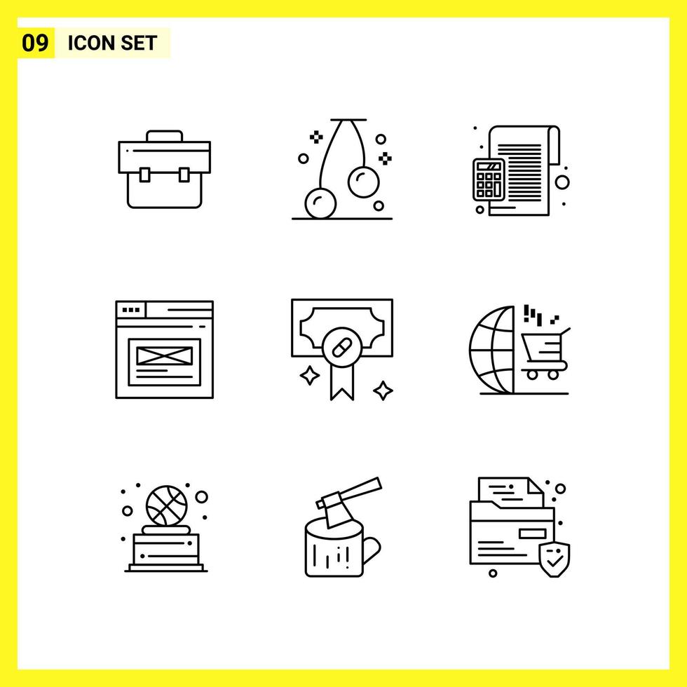 9 Icon Set. Simple Line Symbols. Outline Sign on White Background for Website Design Mobile Applications and Print Media. vector