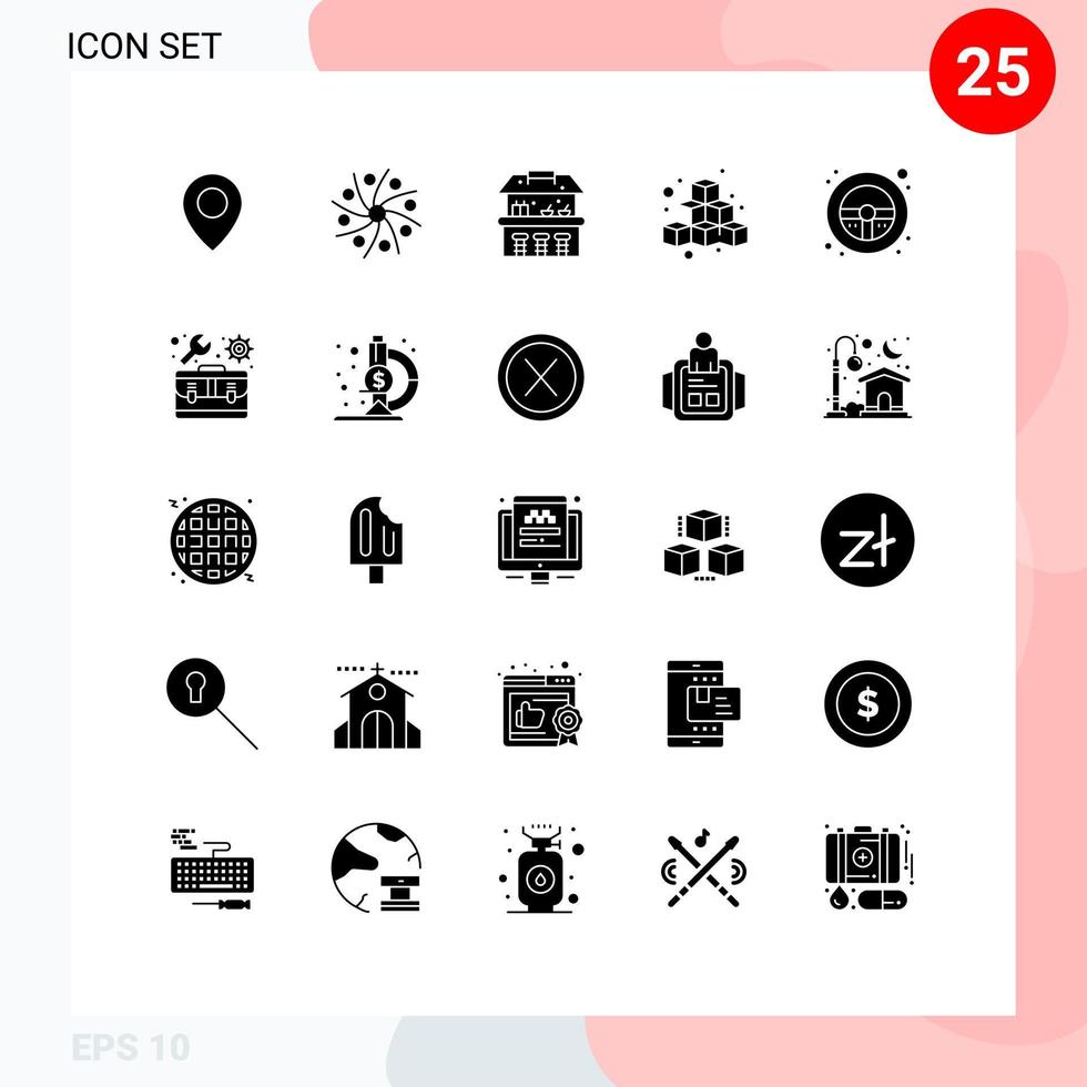 25 Universal Solid Glyphs Set for Web and Mobile Applications steering play sand castle game box Editable Vector Design Elements