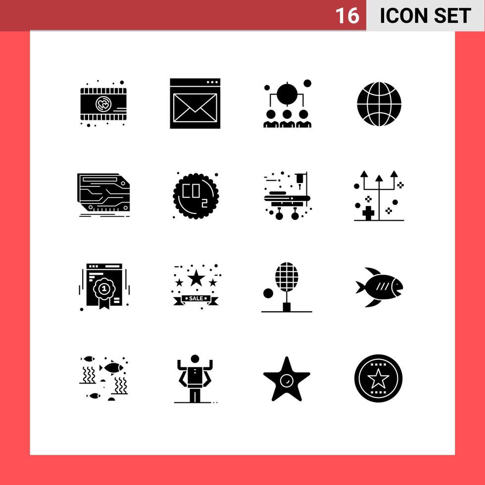 Group of 16 Modern Solid Glyphs Set for component wifi business iot internet Editable Vector Design Elements Free Vector