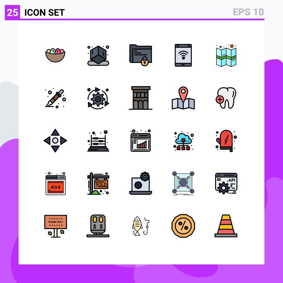 Set of 25 Modern UI Icons Symbols Signs for smartphone network document internet safe folder Editable Vector Design Elements