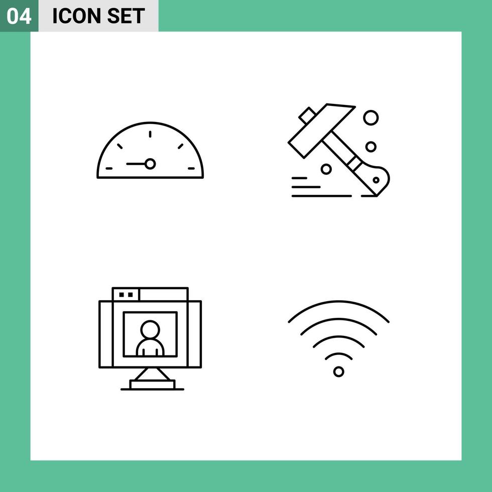 Set of 4 Modern UI Icons Symbols Signs for dash video construction call connection Editable Vector Design Elements