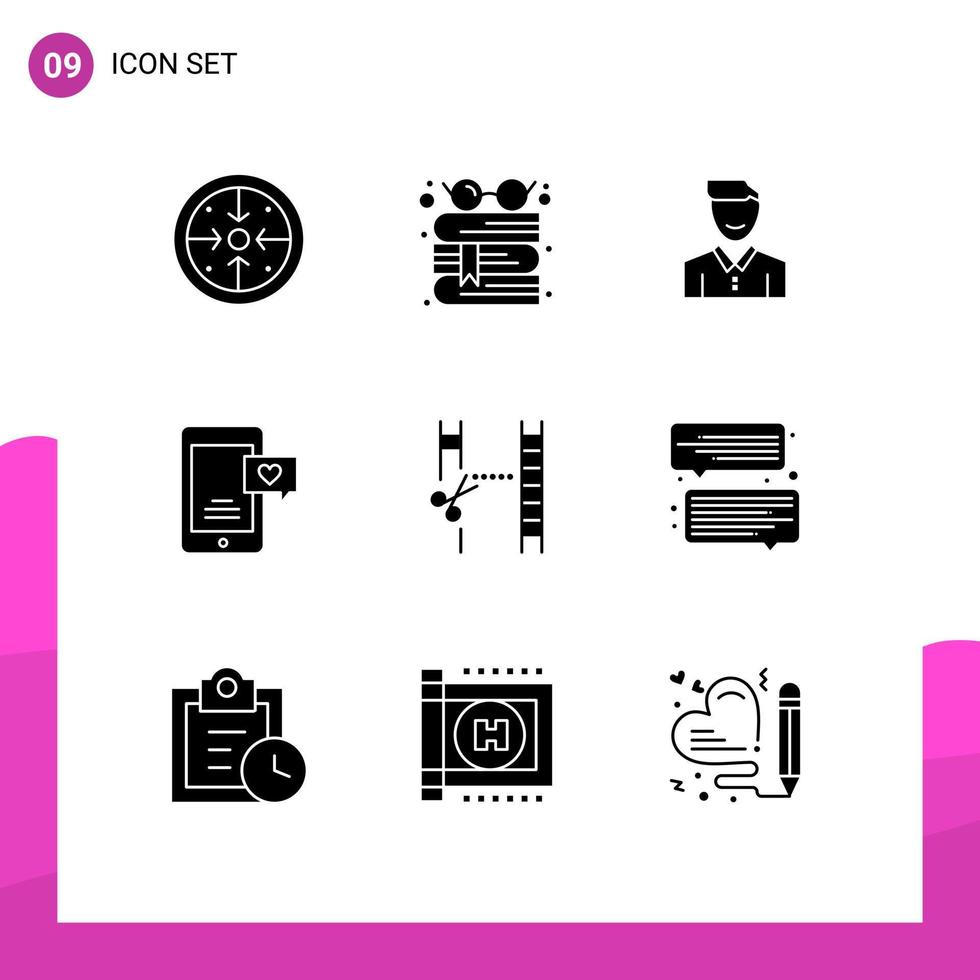 Set of 9 Modern UI Icons Symbols Signs for chat user reading person happy Editable Vector Design Elements
