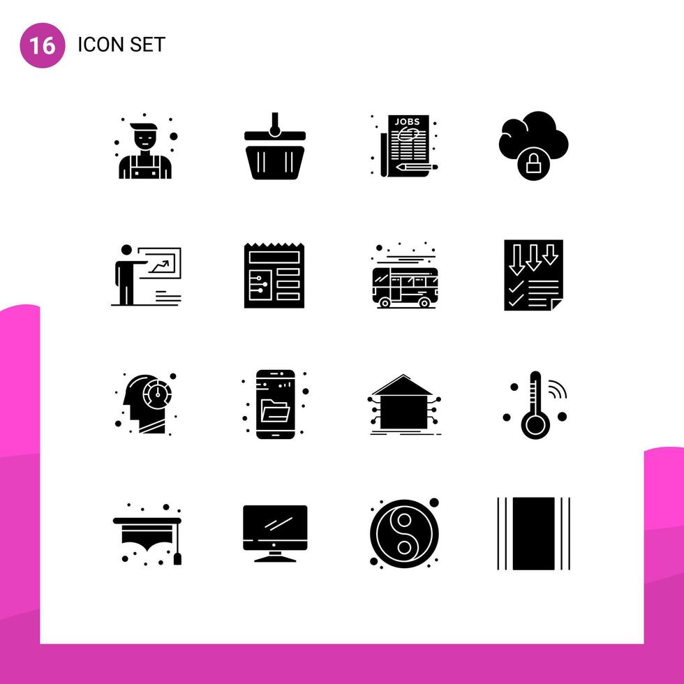 Set of 16 Modern UI Icons Symbols Signs for business solution job presentation data Editable Vector Design Elements