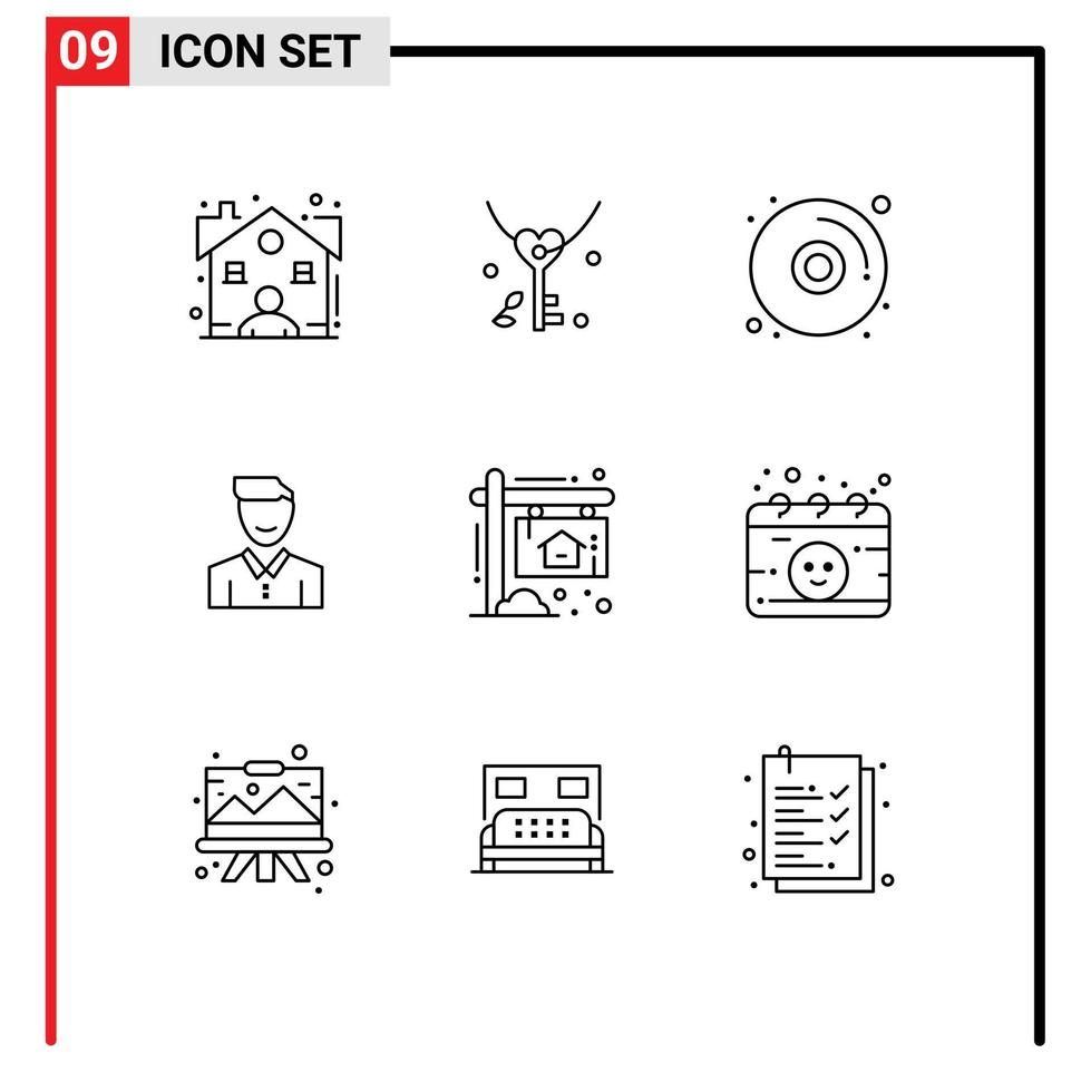 Outline Pack of 9 Universal Symbols of user man cd happy client Editable Vector Design Elements Free Vector