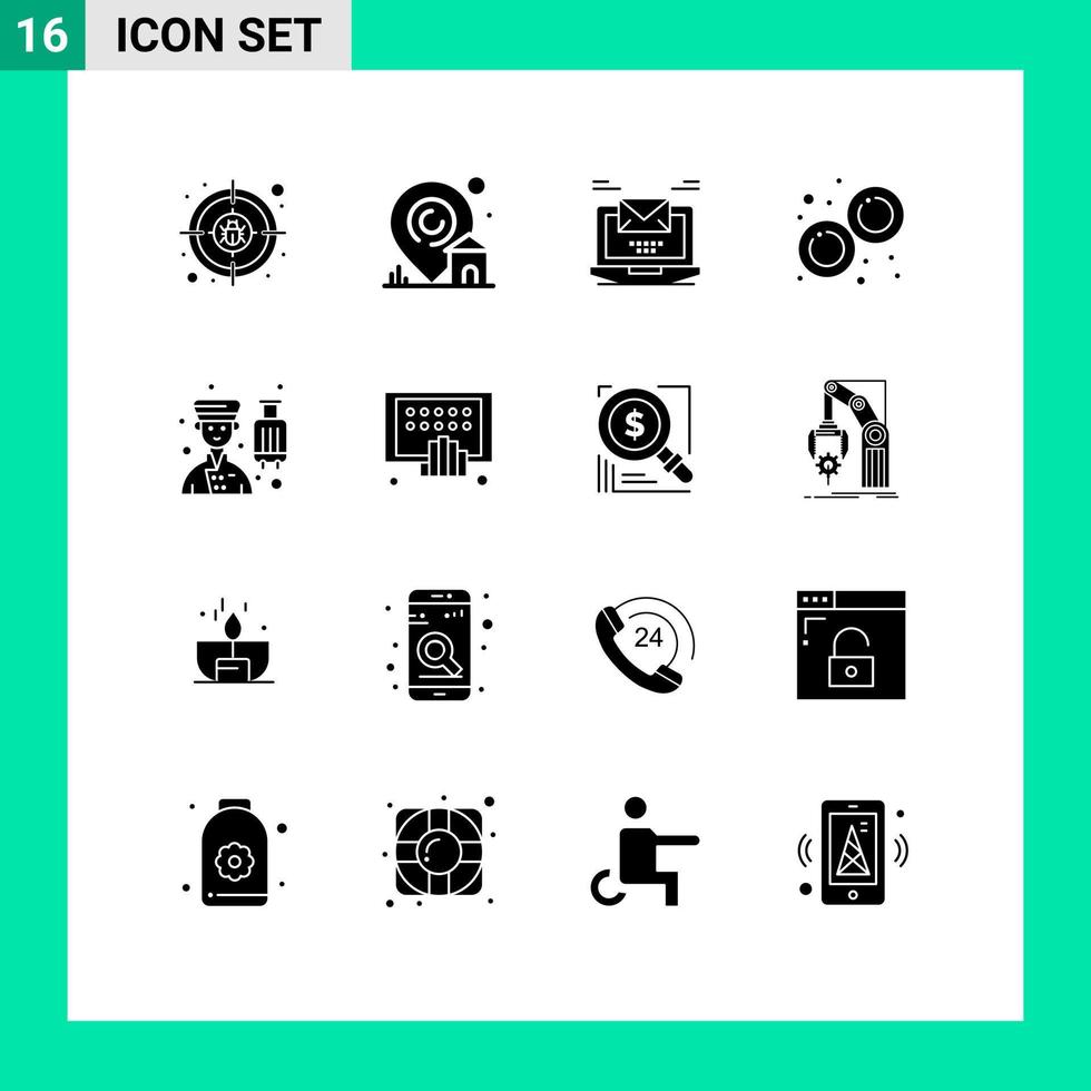 Editable Vector Line Pack of 16 Simple Solid Glyphs of avatar laboratory computer lab laptop Editable Vector Design Elements Free Vector