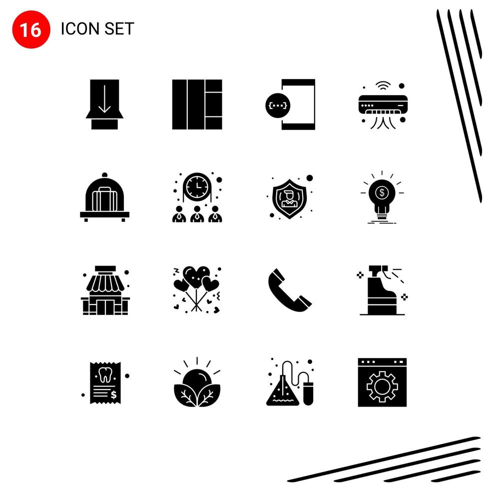 Pack of 16 creative Solid Glyphs of group baggage development wifi internet of things Editable Vector Design Elements Free Vector
