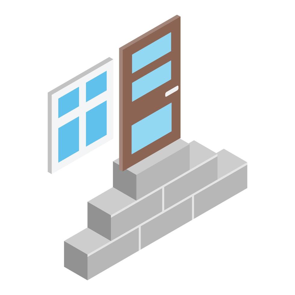 Building component icon isometric vector. New window door and brick stack icon Pro Vector