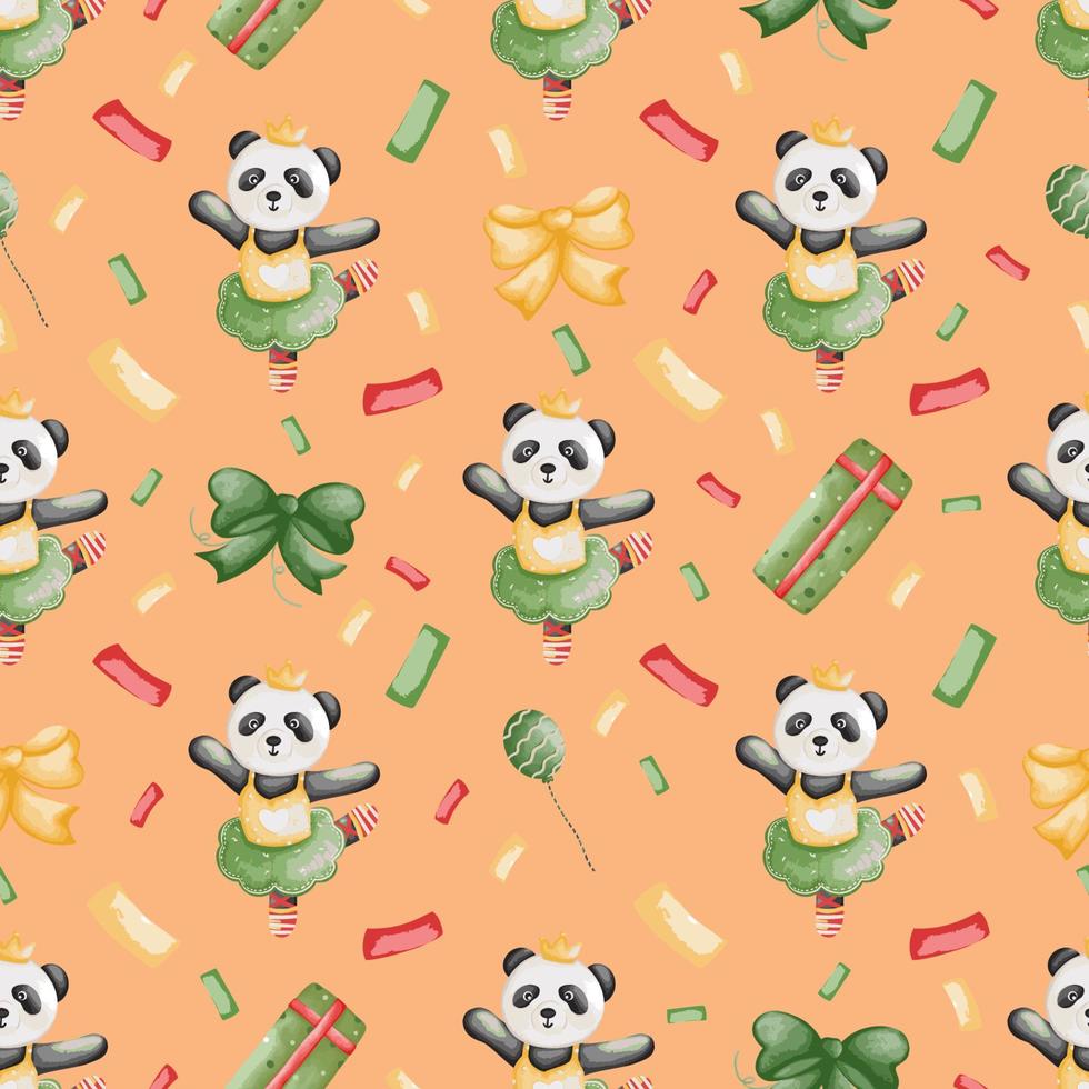 cute panda circus seamless pattern background. wrapping paper template. Christmas background Pro Vector