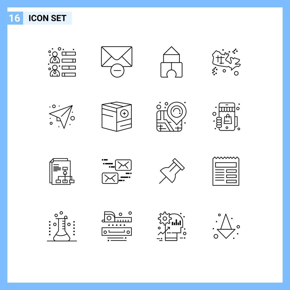 Group of 16 Outlines Signs and Symbols for send paper constructor message treasure Editable Vector Design Elements