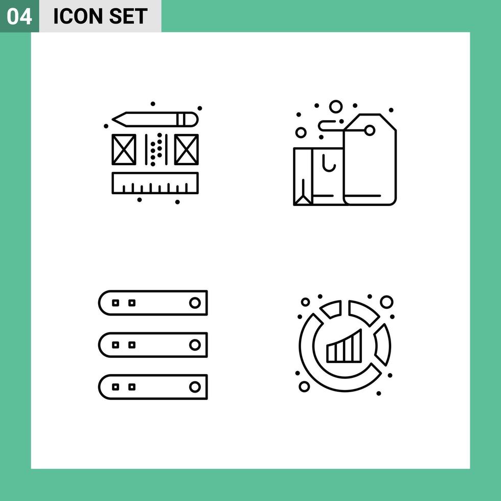 Mobile Interface Line Set of 4 Pictograms of creative files badge label network Editable Vector Design Elements