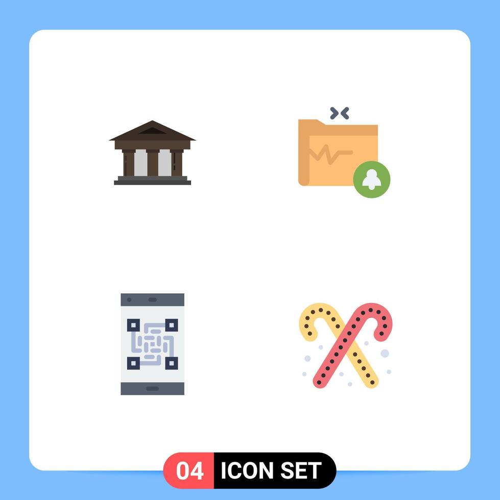 User Interface Pack of 4 Basic Flat Icons of bank code finance folder qr Editable Vector Design Elements Free Vector