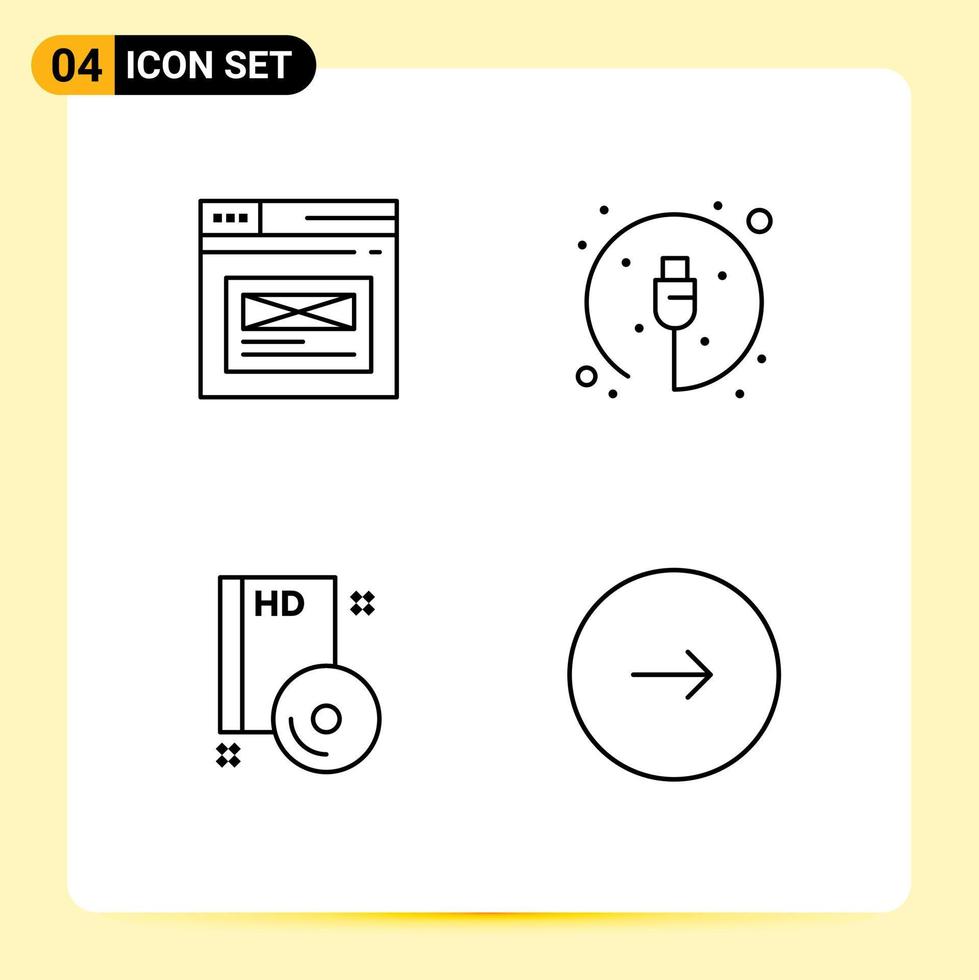 4 User Interface Line Pack of modern Signs and Symbols of internet bluray website hardware compact Editable Vector Design Elements