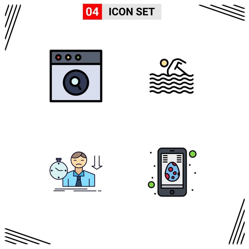 Set of 4 Modern UI Icons Symbols Signs for app fail activity swimming depression Editable Vector Design Elements Free Vector