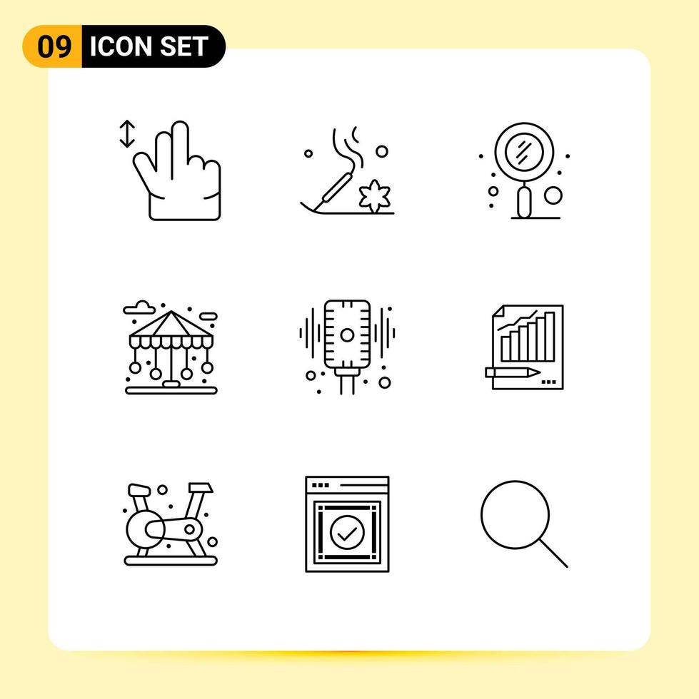 Outline Pack of 9 Universal Symbols of record life scan park building Editable Vector Design Elements