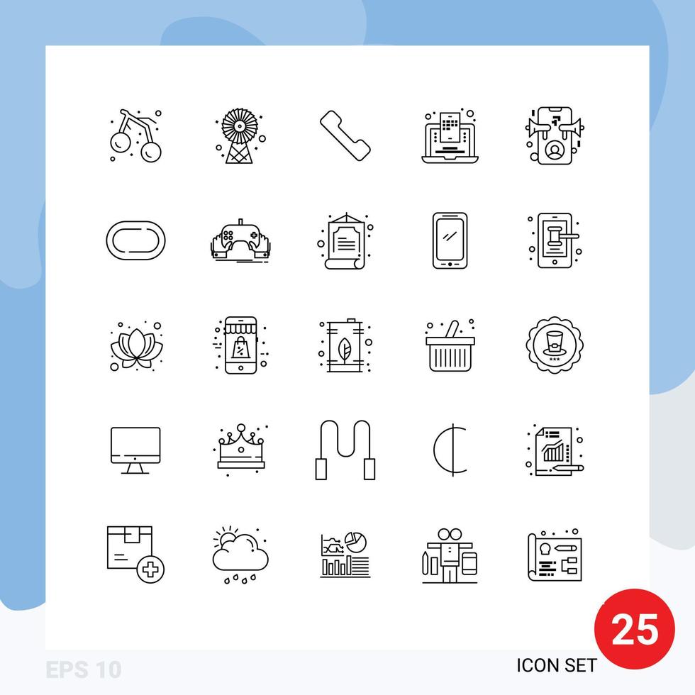 Group of 25 Modern Lines Set for marketing ad telephone web blogging blogger Editable Vector Design Elements