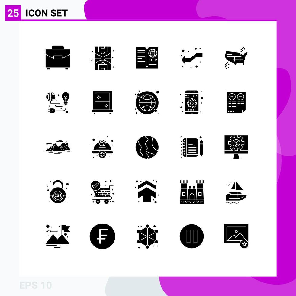 Set of 25 Modern UI Icons Symbols Signs for map left id intersection arrows Editable Vector Design Elements