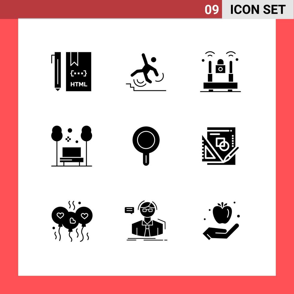 User Interface Pack of 9 Basic Solid Glyphs of relax park failure chair lock Editable Vector Design Elements Free Vector