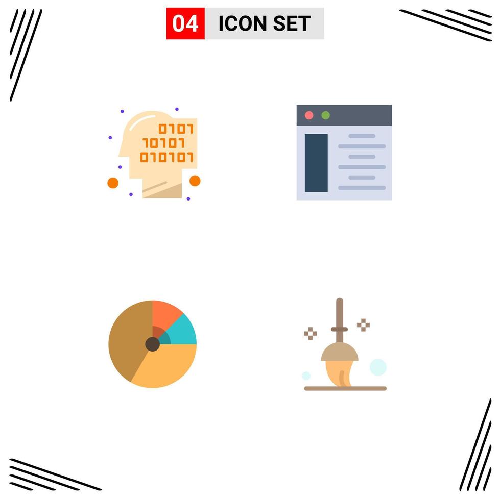 Group of 4 Modern Flat Icons Set for binary chart recognition server finance Editable Vector Design Elements Free Vector