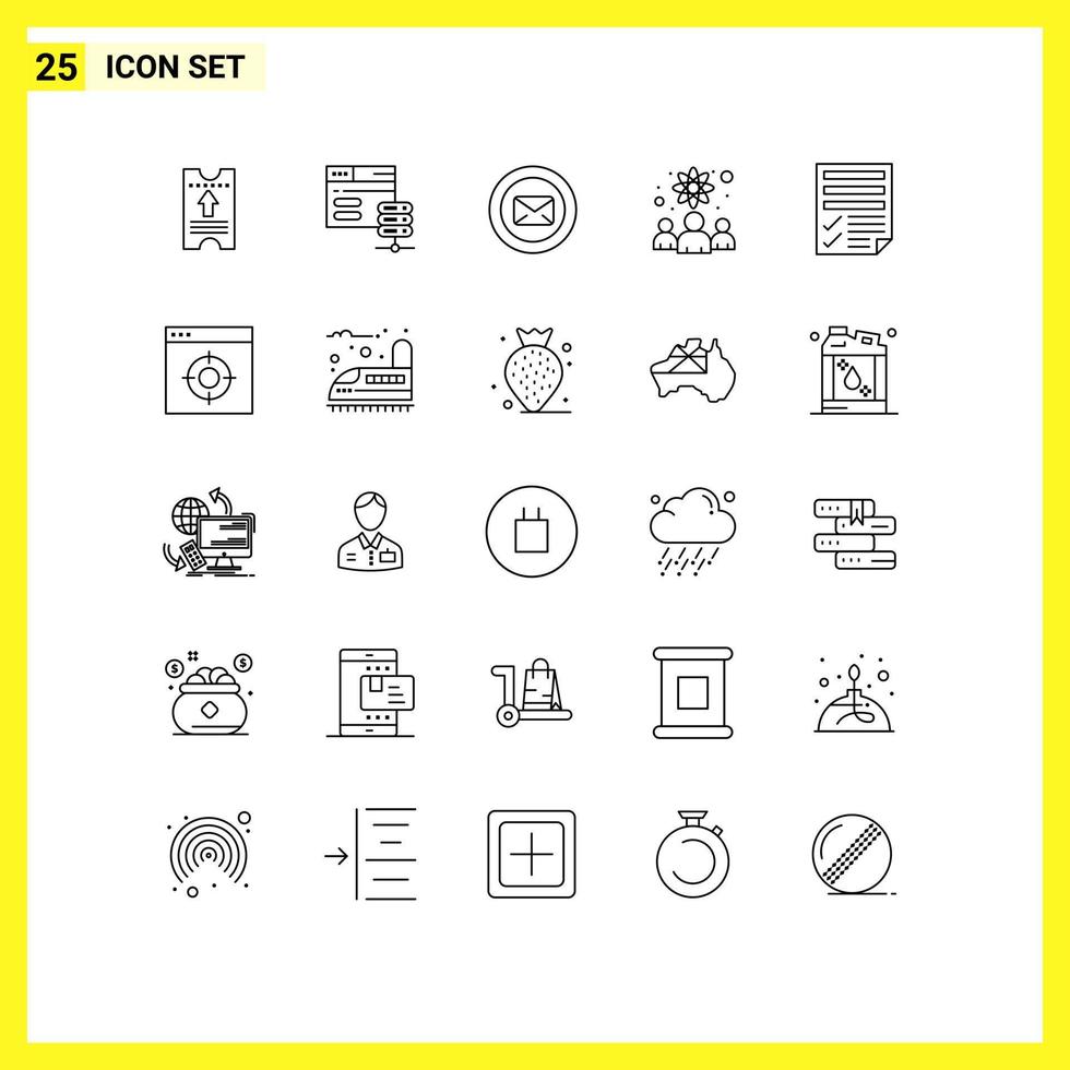 User Interface Pack of 25 Basic Lines of data researchers chat physicists typing Editable Vector Design Elements