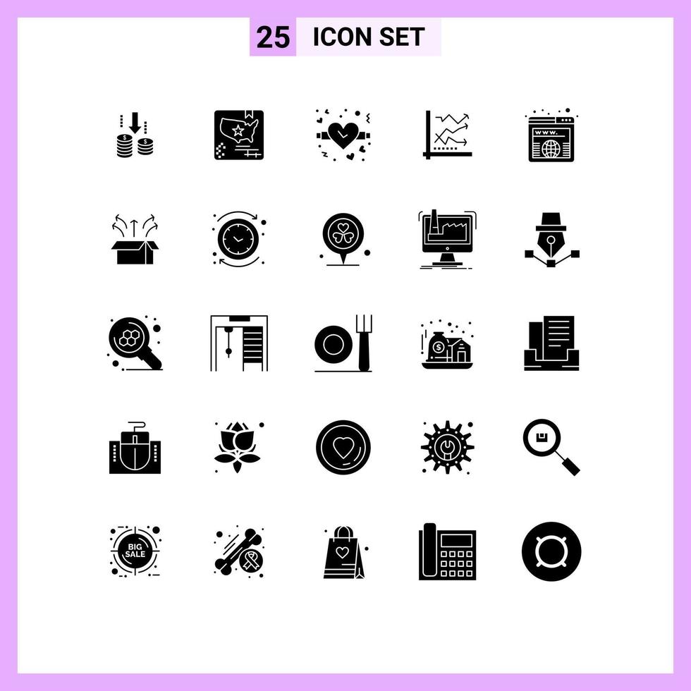 Modern Set of 25 Solid Glyphs and symbols such as address chart love analytics analysis Editable Vector Design Elements Free Vector