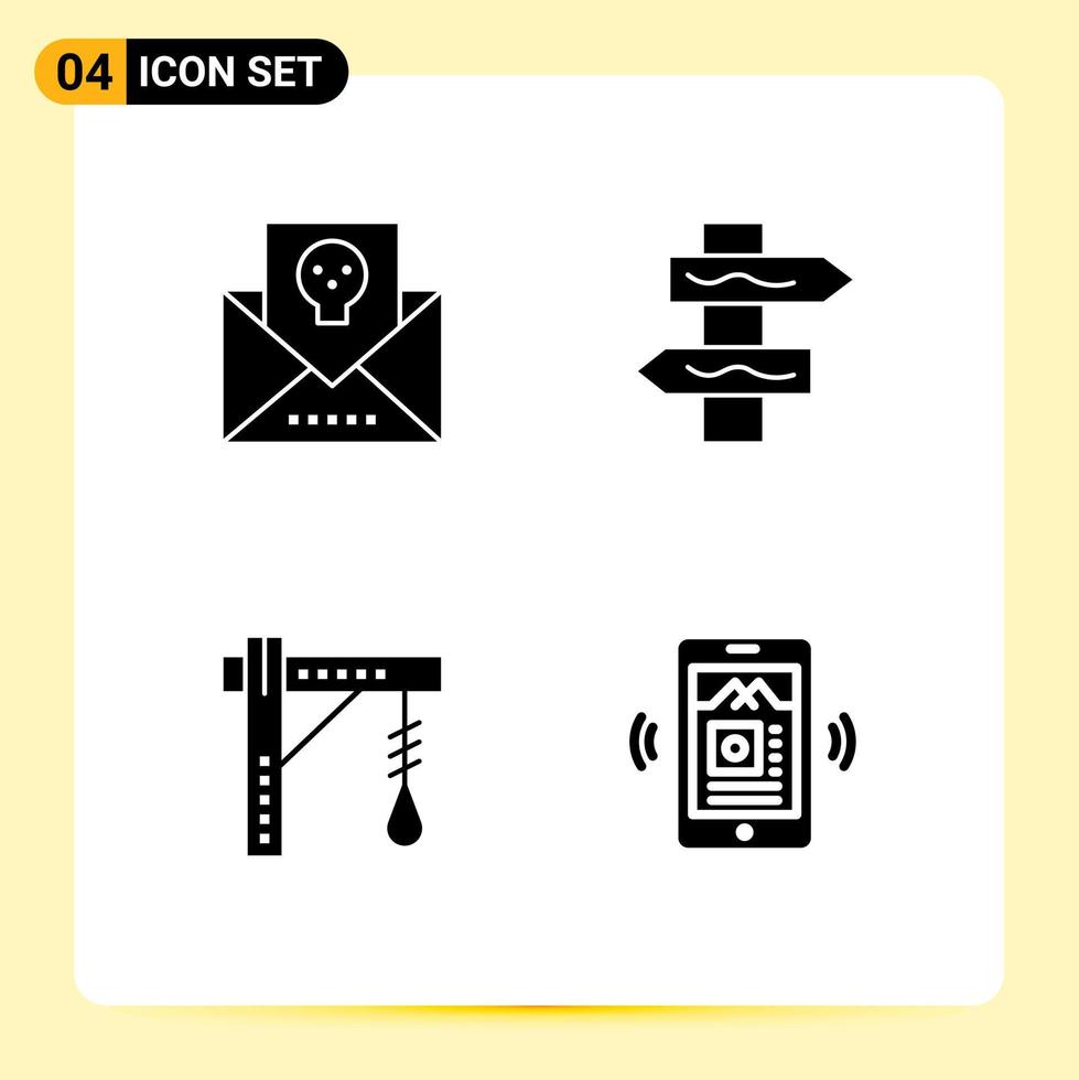 4 User Interface Solid Glyph Pack of modern Signs and Symbols of address bulb horror navigation halloween Editable Vector Design Elements