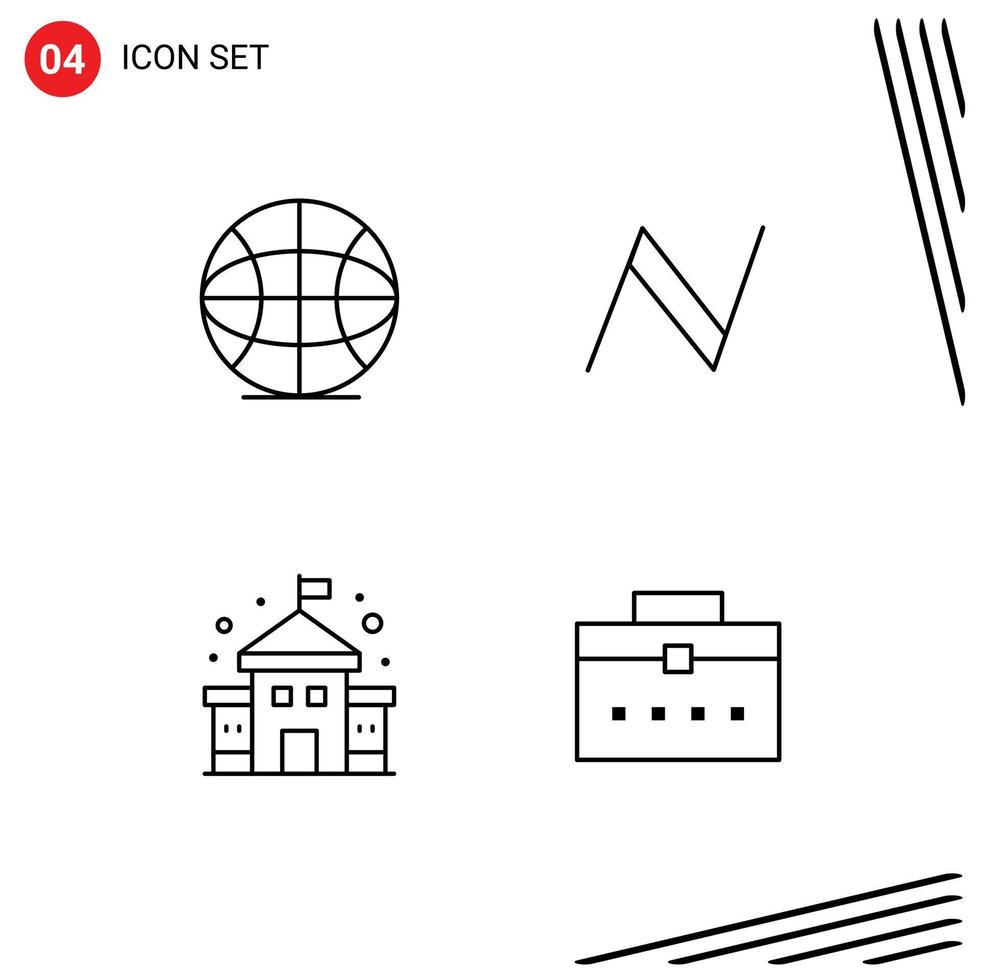 4 Line concept for Websites Mobile and Apps globe school name coin currency worker bag Editable Vector Design Elements