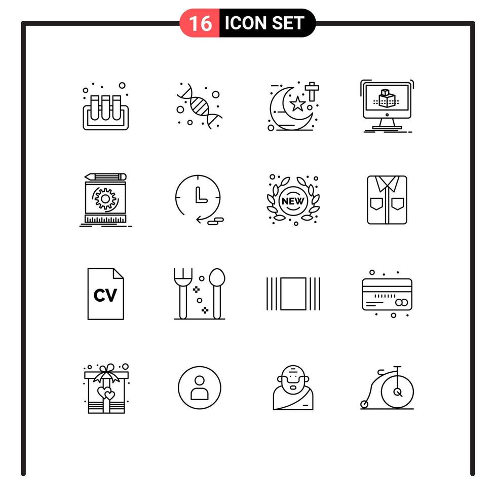 Pictogram Set of 16 Simple Outlines of engineering sketch religion modelling cube Editable Vector Design Elements Free Vector