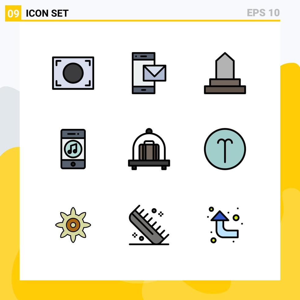 Set of 9 Modern UI Icons Symbols Signs for baggage player building music communications Editable Vector Design Elements