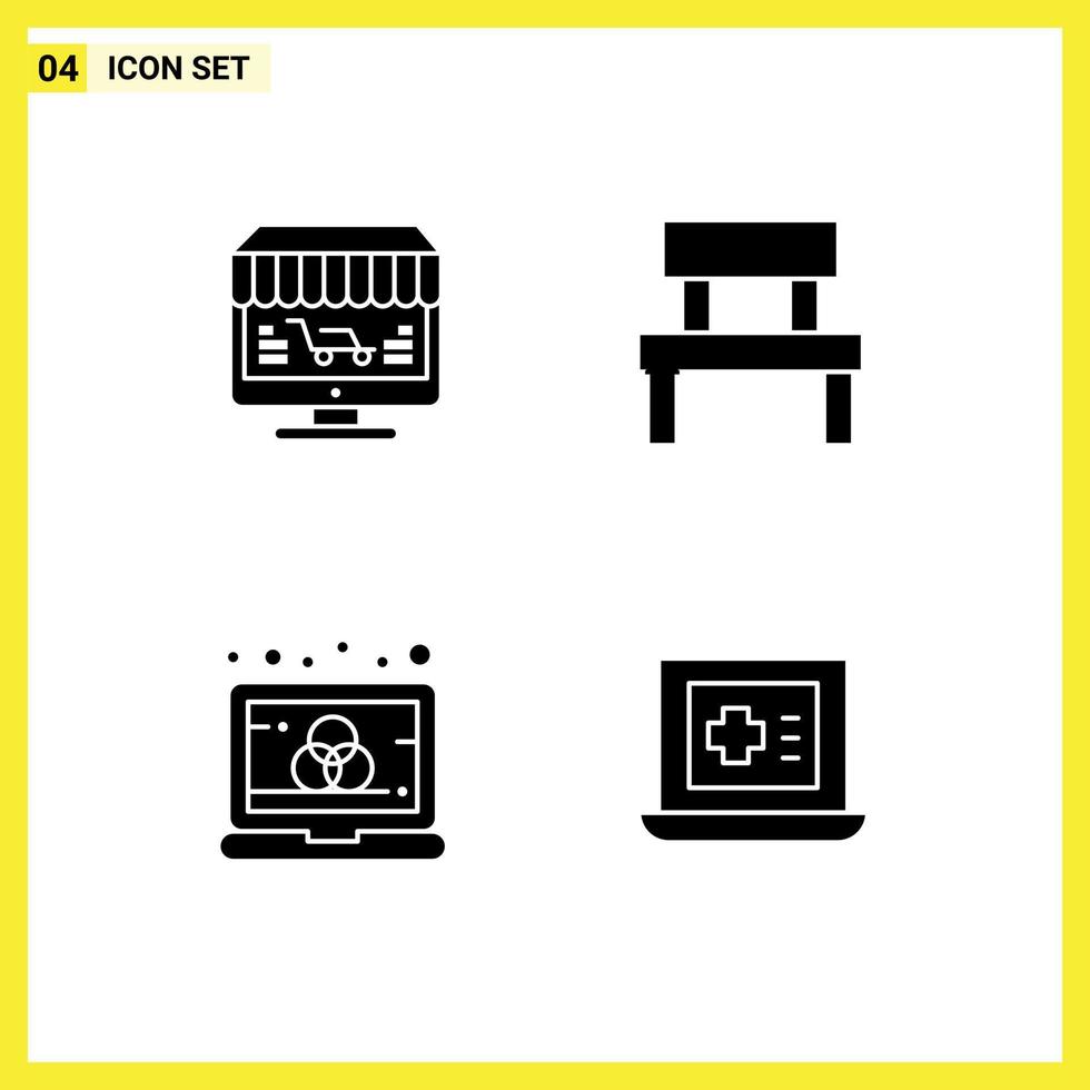 Editable Vector Line Pack of 4 Simple Solid Glyphs of monitor park store furniture computer Editable Vector Design Elements