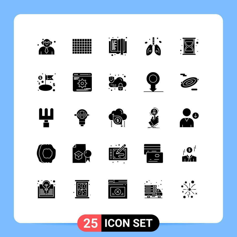 Pictogram Set of 25 Simple Solid Glyphs of time efficiency e learning organ heart Editable Vector Design Elements