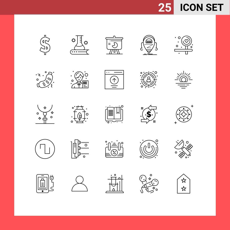 25 User Interface Line Pack of modern Signs and Symbols of technology droid chart beta graph Editable Vector Design Elements