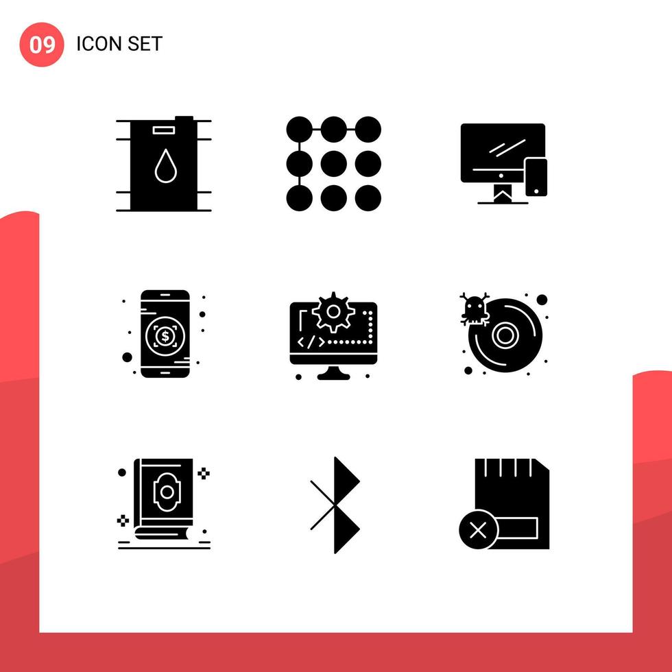 Stock Vector Icon Pack of 9 Line Signs and Symbols for gear coding device computer investment Editable Vector Design Elements