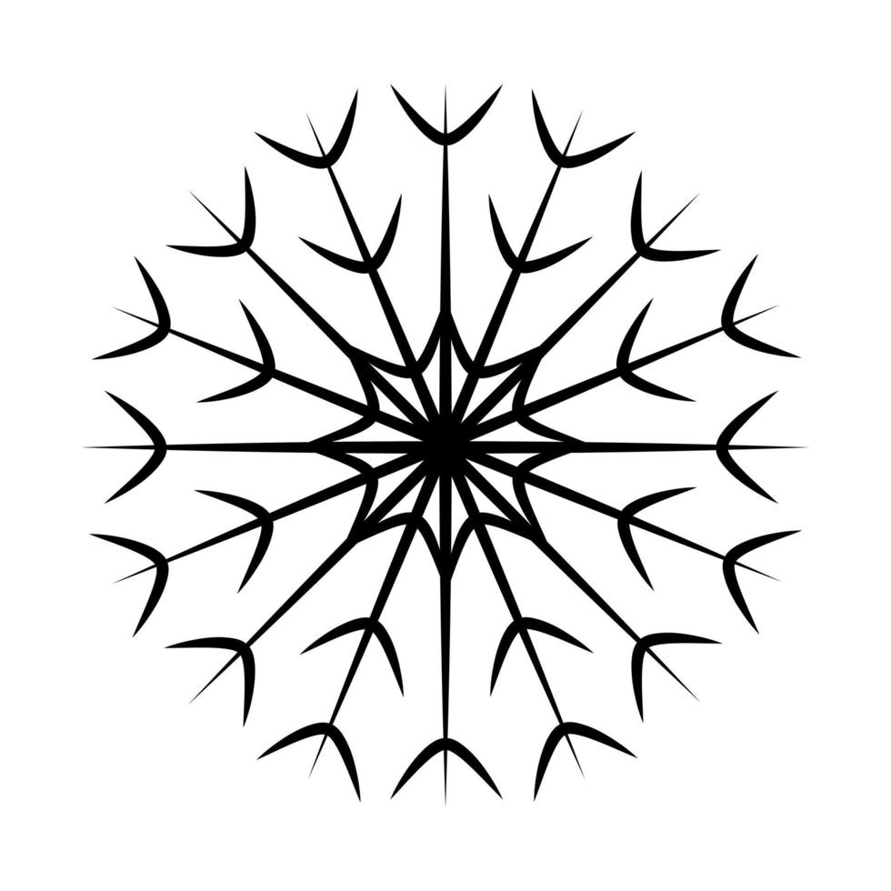 Black and white Outline drawing openwork snowflake in a minimalist style. Abstract backdrop. Isolate Pro Vector