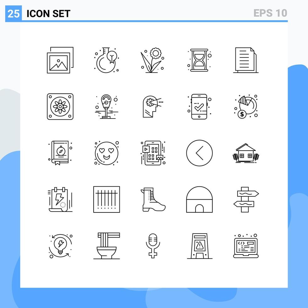 Mobile Interface Line Set of 25 Pictograms of documents copy floral time efficiency Editable Vector Design Elements