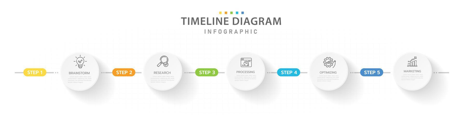 Infographic template for business. 5 Steps Modern Timeline diagram with circle topics, presentation vector infographic. Pro Vector