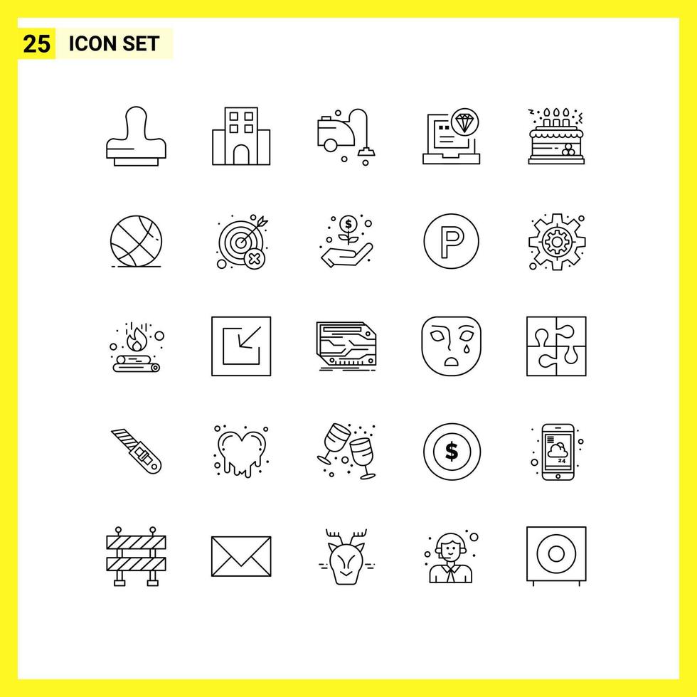Line Pack of 25 Universal Symbols of birthday coding clean code app Editable Vector Design Elements