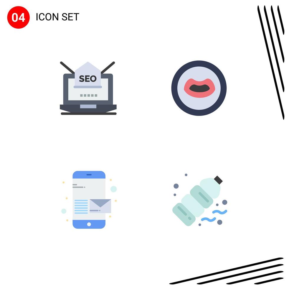 4 User Interface Flat Icon Pack of modern Signs and Symbols of seo message mail lips send Editable Vector Design Elements Free Vector