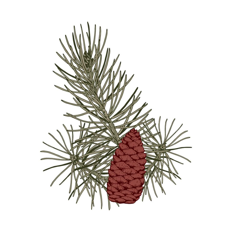 Christmas botany composition with pine tree branches and cones. Vector illustration in sketch style isolated on white background Pro Vector