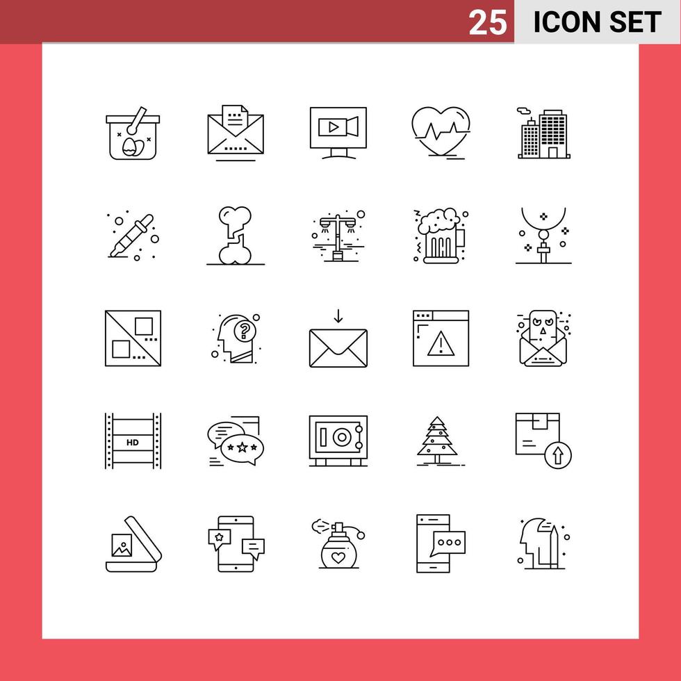 Pictogram Set of 25 Simple Lines of building pulse monitor heartbeat ecg Editable Vector Design Elements