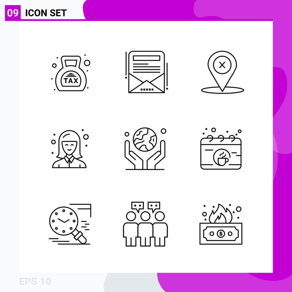 Line Icon set Pack of 9 Outline Icons isolated on White Background for Web Print and Mobile vector