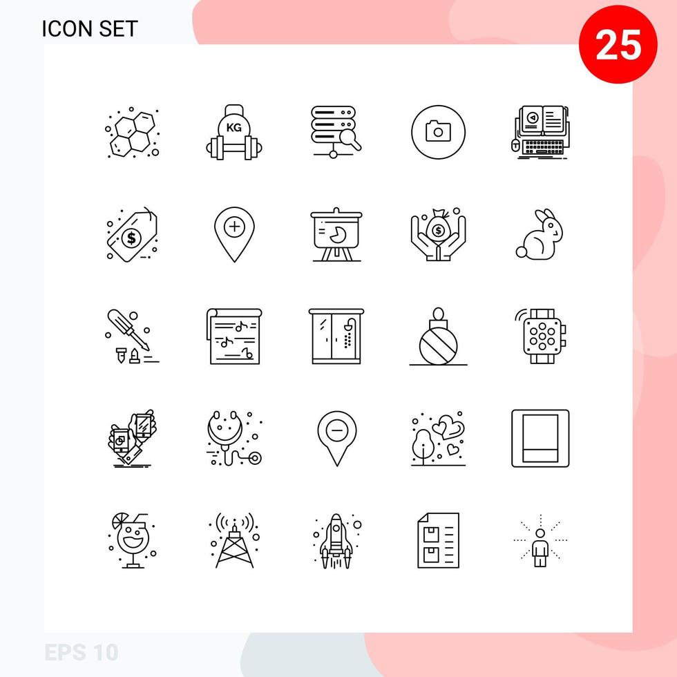 25 User Interface Line Pack of modern Signs and Symbols of interactive book web ui image Editable Vector Design Elements