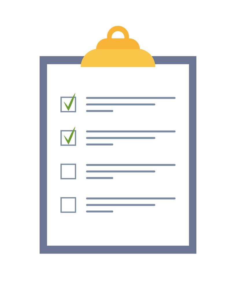 Clipboard with checklist with green check marks and pen. Control list on notepad. Concept of Survey, quiz, to-do list or agreement. Vector illustration in flat style. Pro Vector