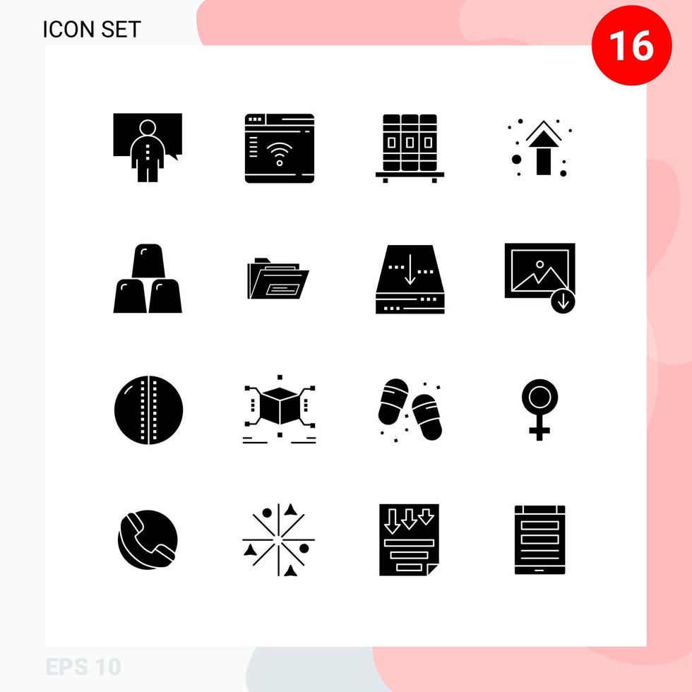 Modern Set of 16 Solid Glyphs and symbols such as bars direction webpage up arrow Editable Vector Design Elements Free Vector