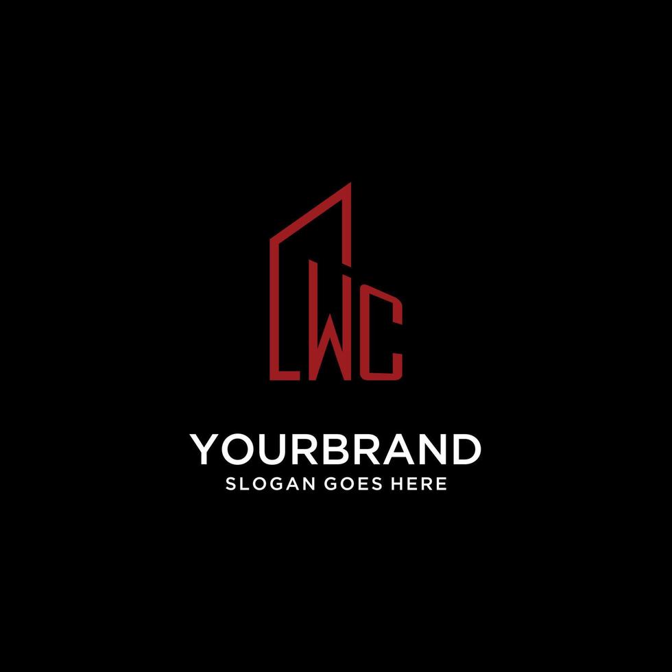 WC initial monogram with building logo design Pro Vector and Pro SVG