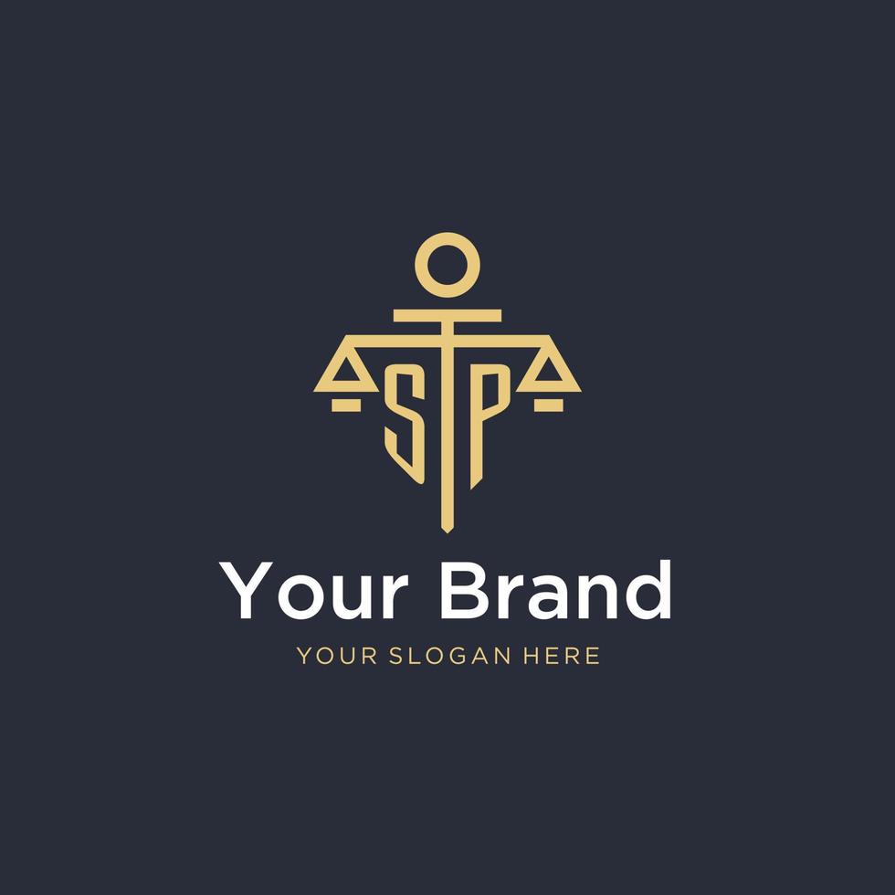 SP initial monogram logo with scale and pillar style design Pro Vector and Pro SVG