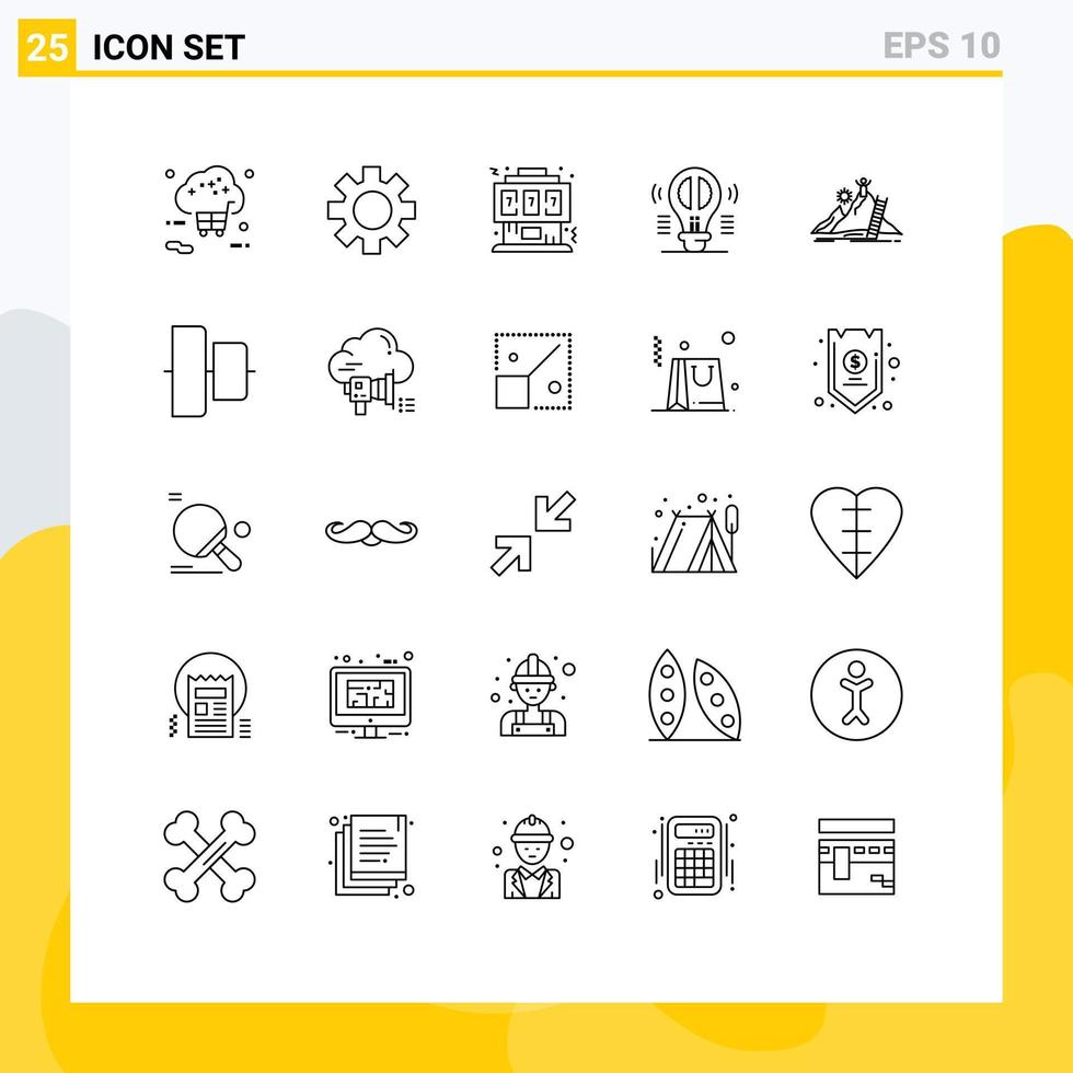Universal Icon Symbols Group of 25 Modern Lines of mind bulb global brain joystick Editable Vector Design Elements
