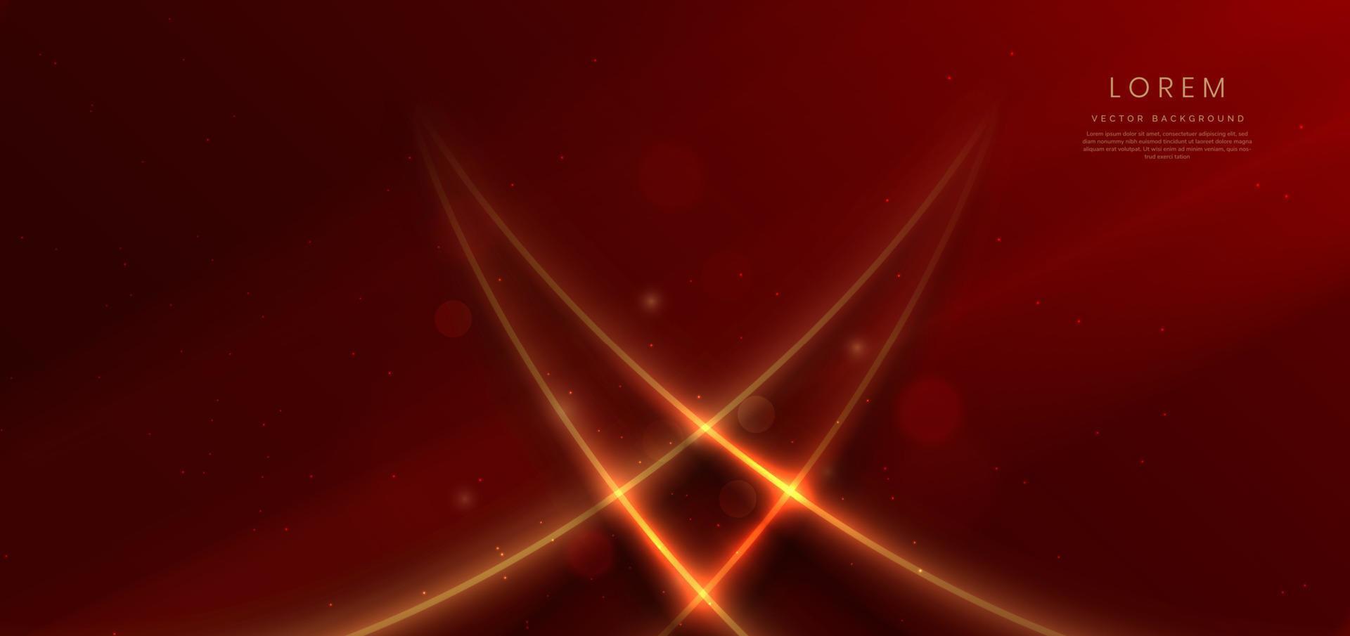 Abstract glowing gold curved lines on red background with lighting effect and sparkle with copy space for text. vector